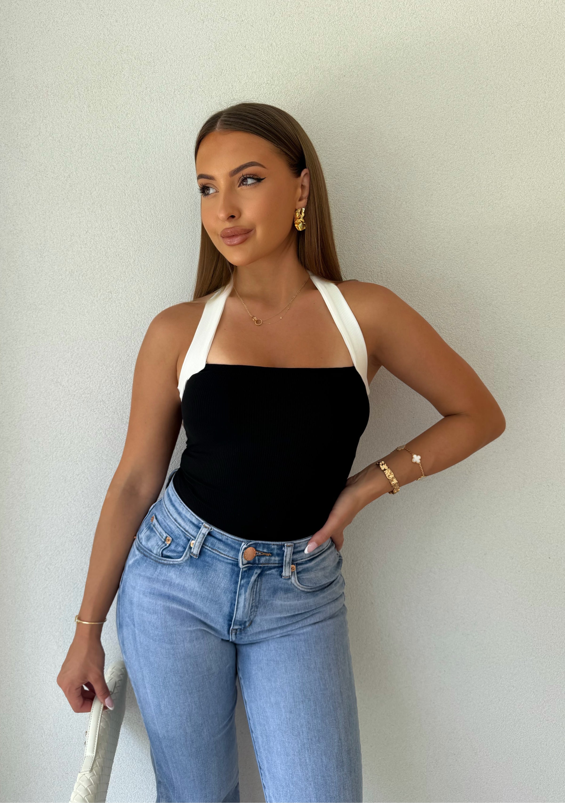 Aria Halter Bodysuit Blk/Wht | MBL