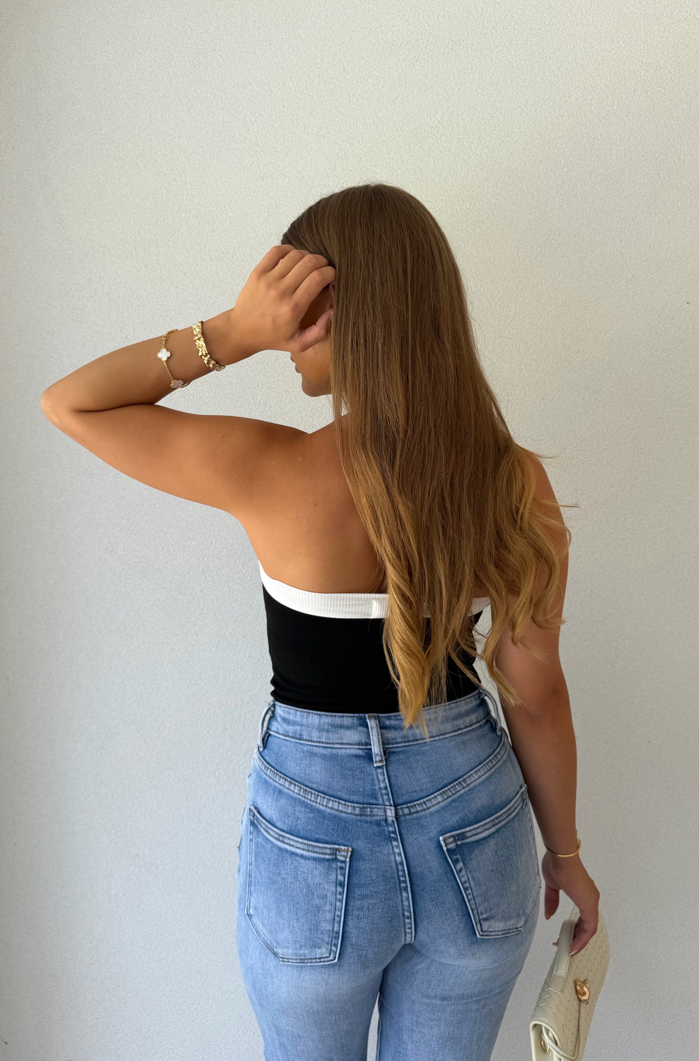 Featuring a flattering square neckline and a sleek halter-style strap detail, this piece gives an elevated, effortless look that can easily be worn from day to night.
