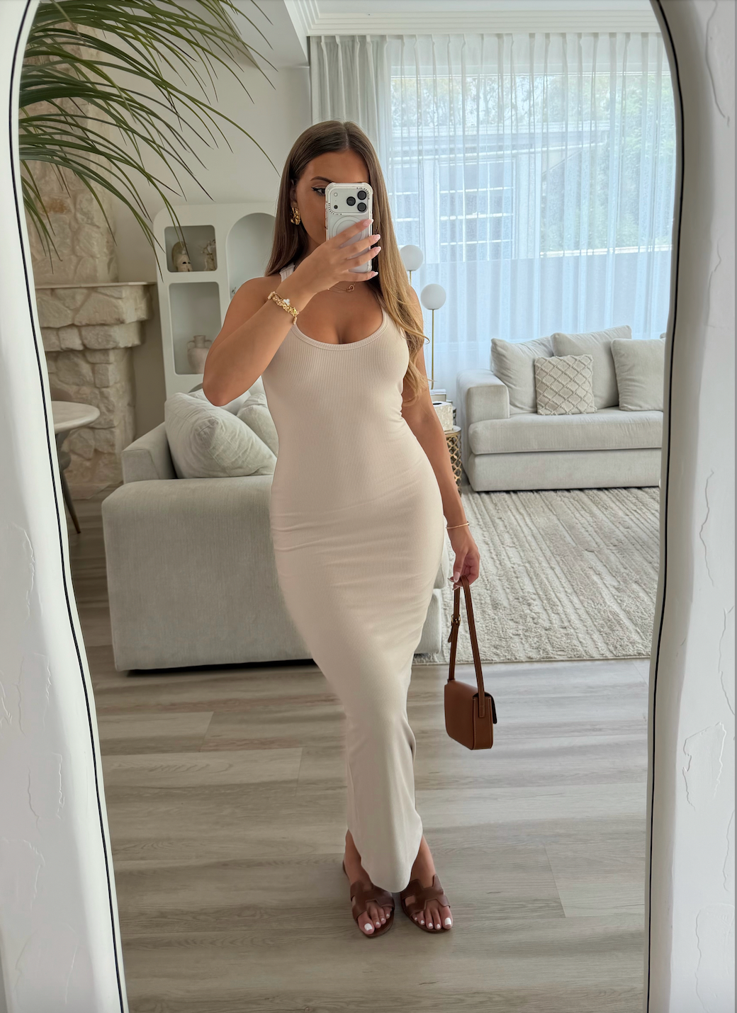 Crafted from our signature stretch ribbed fabric, this style is double lined to smooth, sculpt and mould to your body in all the right places. Designed in a flattering full length maxi fit, featuring a classic round neckline and a sleek racer back design for that effortlessly snatched silhouette.