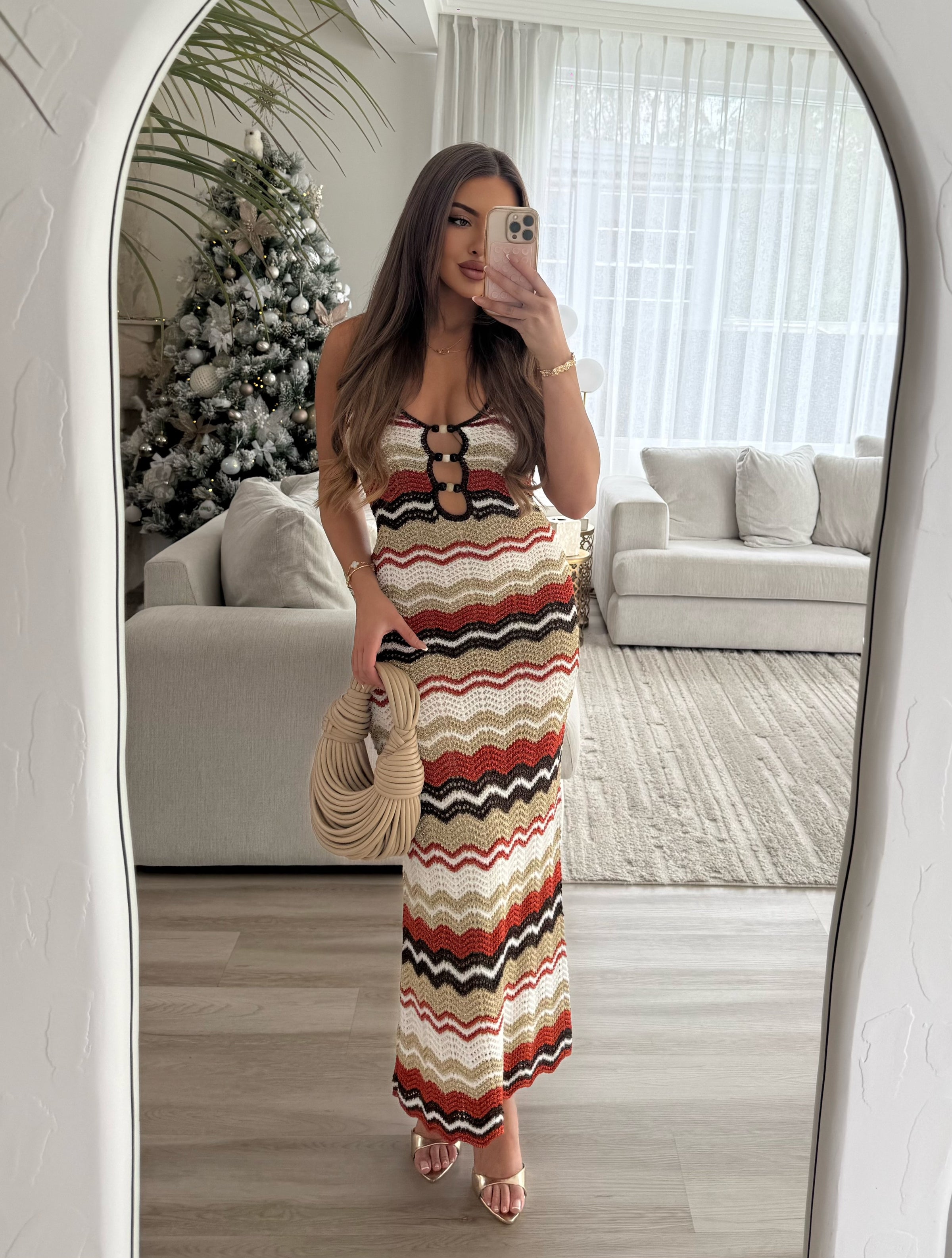 Crafted from earthy toned knit fabric and bead detailing, our Solana Maxi Dress is the perfect summer piece for bottomless brunch.
